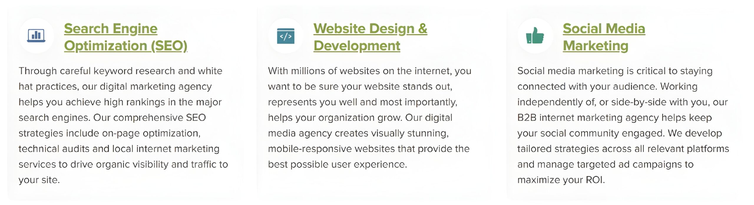You might have a website, but if it isn’t driving leads or boosting conversions, search engines likely aren’t recognizing it. To make sure customers discover your business online, our marketing agency elevates every part of your digital presence — from your website design and copy to your keywords, social profiles, and more. Partner with a top digital marketing company and get the maximum return on your marketing investment.