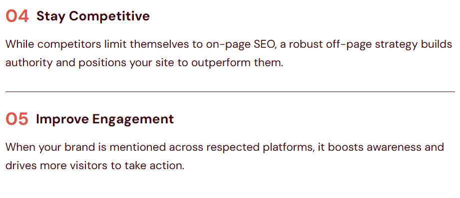 Partnering with an off-page SEO specialist helps enhance your site’s visibility and authority by securing high-quality backlinks and generating positive signals from trusted sources. Search engines view these endorsements as indicators of reliability and valuable content. With a solid off-page SEO strategy, you can achieve higher traffic, improved conversions, and a stronger digital footprint.